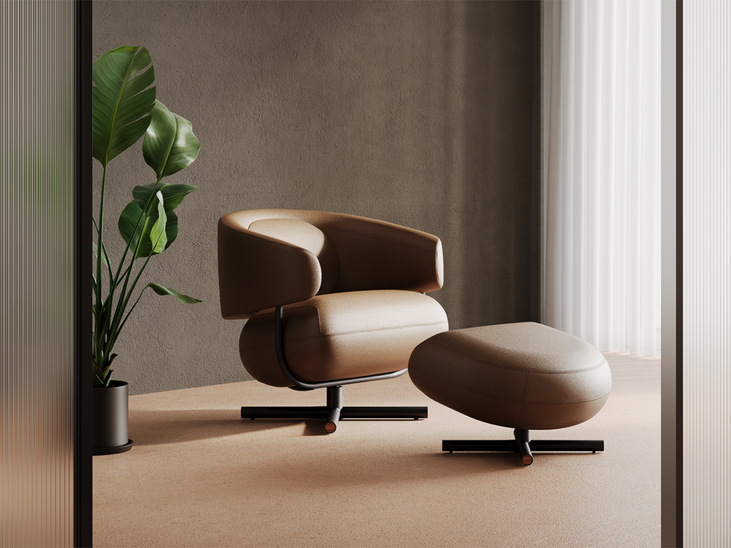 Flote lounge chair, introduced in 2023, manufactured fully in North Carolina, certified Indoor Advantage Gold, vetted against the Red List, and with some recycled content.